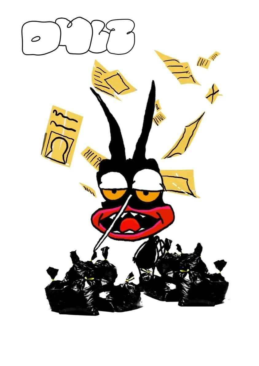 This Character is a Mischievous Flea Witnessing the grim world around him, he represents a response to the chaos of the world. His demeanour signifies an acceptance to the absurdity - to thrive in chaos.
